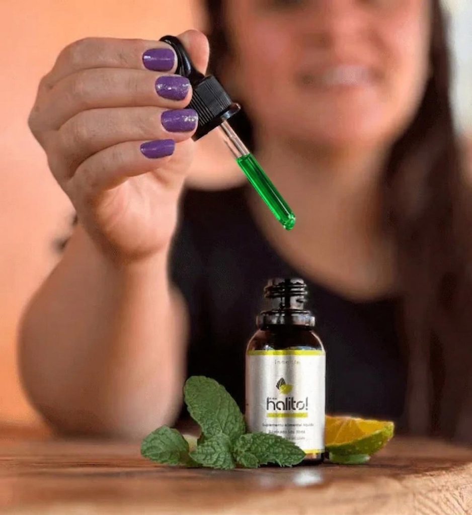 – De 6 a 10 gotas por vez. Caso a halitose for mais forte pode utilizar 10 gotas por vez, se for mais tranquila, 6 gotas por vez..